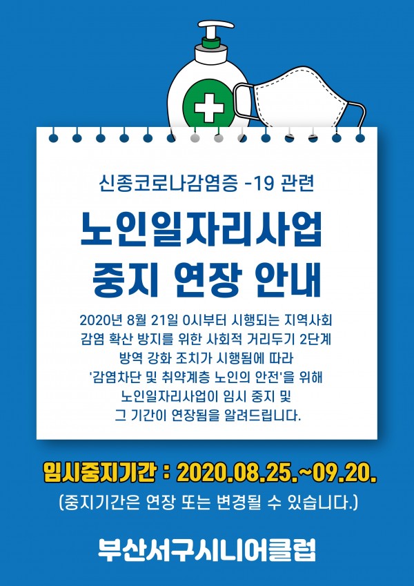 부산서구시니어클럽에서는 2020년 8월 21일 0시 부터 시행되는