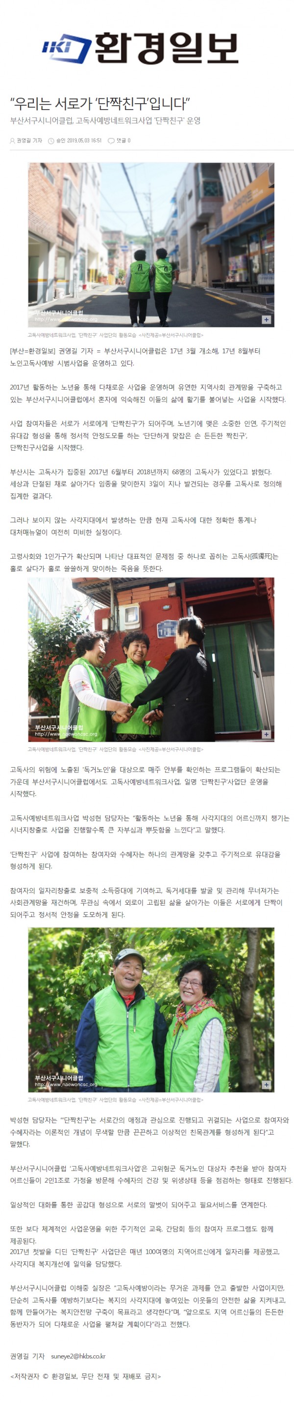 [언론보도:환경일보] 우리는 서로가 단짝 친구입니다!