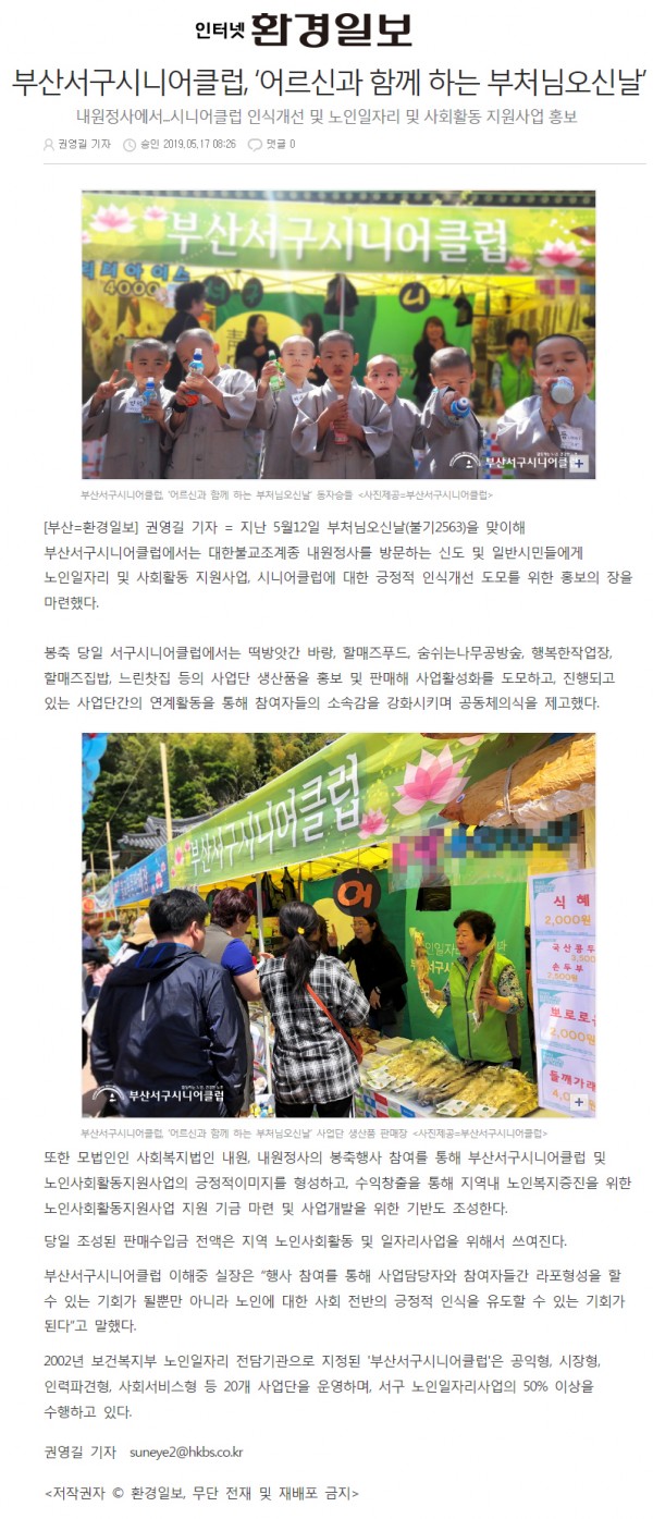 [언론보도:환경일보] 부산서구시니어클럽,'어르신과 함께하는 부처님 오신날' 페이지 정보 작성자 부산서구시니어클럽 댓글 0건 조회 8,519회 작성일 19-05-17 13:15 본문 환경일보 2019년 05년 17일 권영길 기자 [기사원본 링크] http://www.hkbs.co.kr/news/articleView.html?idxno=514035 목록 이전글[언론보도:환경일보]부산서구시니어클럽,'노인일자리사업 생산품'홍보 19.07.02 다음글[언론보도:환경일보] 우리는 서로가 단짝 친구입니다! 19.05.07 댓글목록 댓글목록 등록된 댓글이 없습니다.
