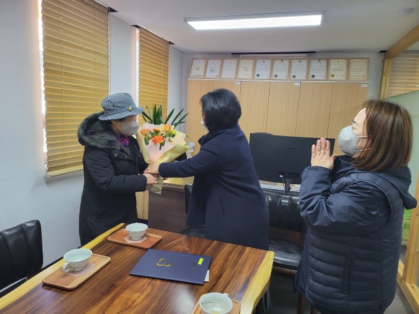 그래서 기관에서 관장님과 함게 조촐하게 시상식을 실시하였습니다.